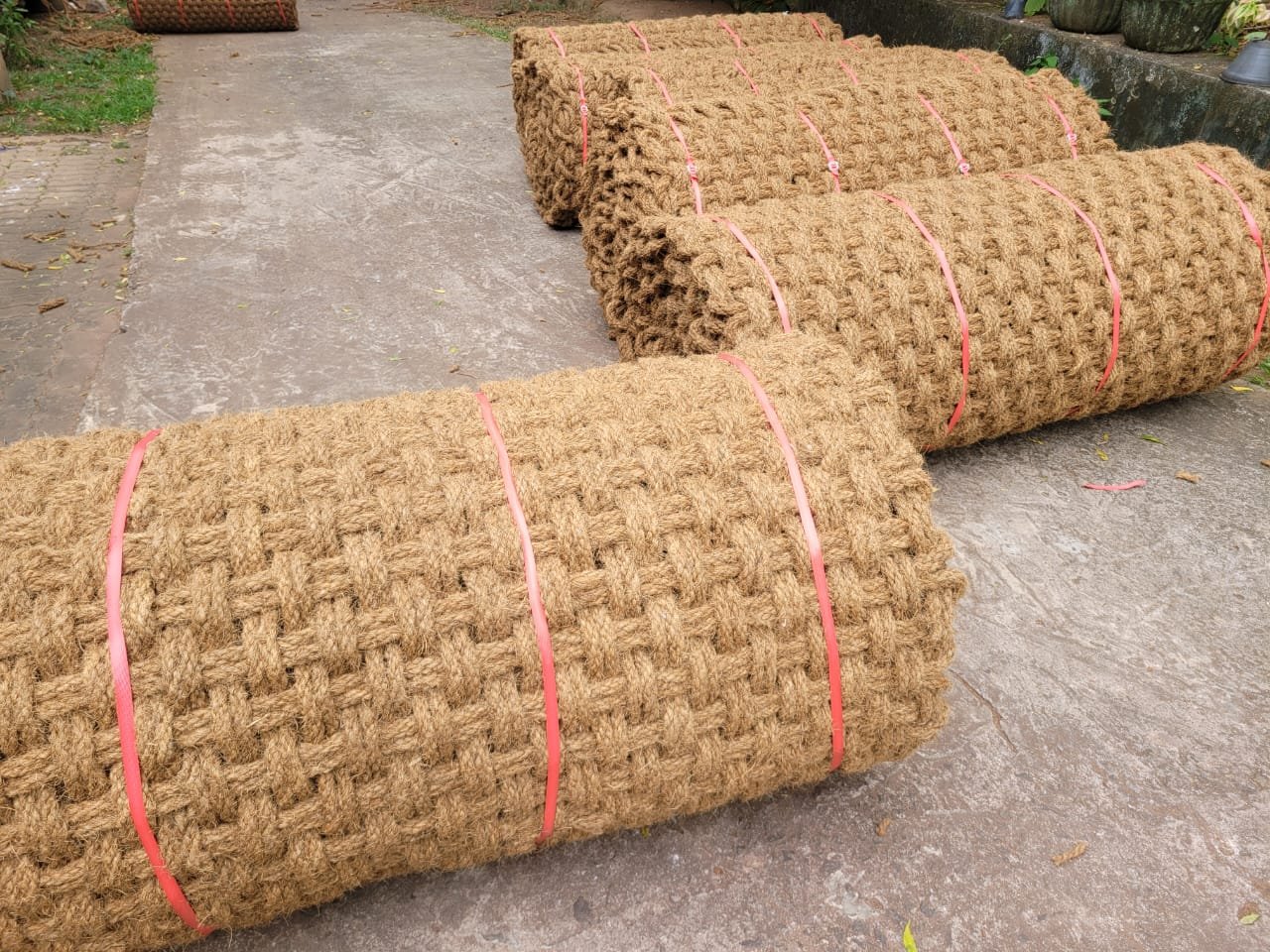 Unlike bare soil, which quickly becomes slippery and unstable, the woven coir structure enhances ground performance and usability.
